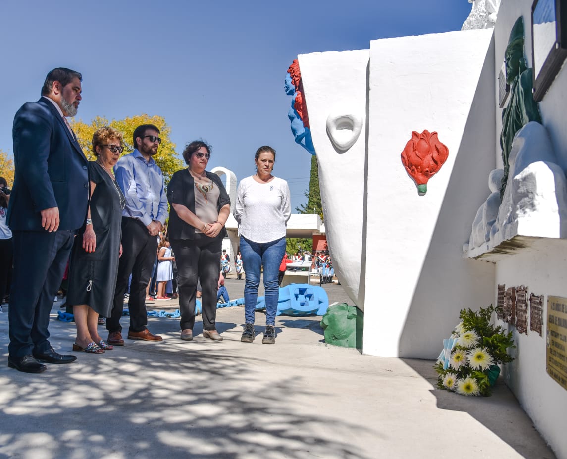En la continuidad del acto hablaron a los presentes Gabriela y Macarena, sobrinas del querido Vasco Amesgaray, el intendente municipal y la ministra de Desarrollo Social. Posteriormente, alumnos de dos instituciones piquenses interpretaron, con lenguaje de manos, la canción Sube bandera del amor.