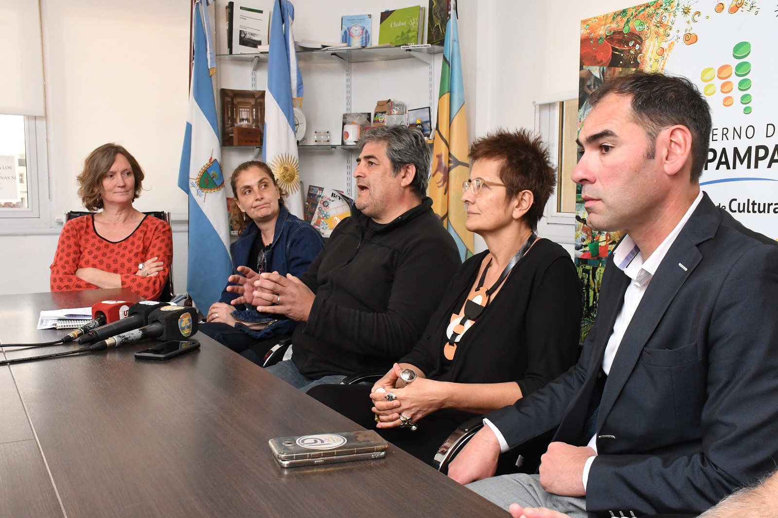 El anuncio lo efectuó la secretaria de Cultura, Adriana Maggio, acompañada de los hacedores de Cerámica Tierra Ranquel, Juan Perez y Natalia Martínez; además del representante del Consejo Provincial Aborigen, Javier Weis, la directora de Cultura, Dini Calderón y el presidente de la Asociación Pampeana de Escritores, Sergio Di Matteo.