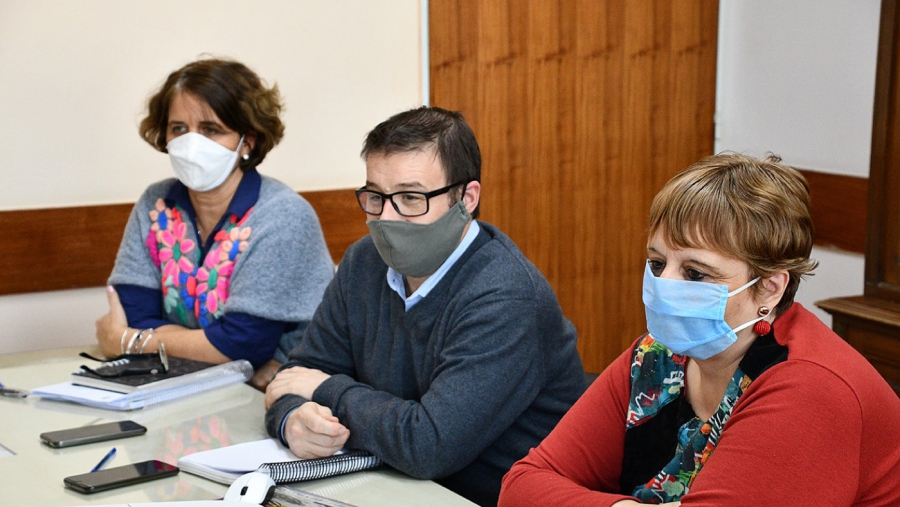 El ministro de Educación de La Pampa, Pablo Maccione, acompañado por la subsecretaria de Educación, Marcela Feuerschvenger, y la subsecretaria de Educación Técnico Profesional, Gladys del Luján Cruseño, participaron de la 97° Asamblea Virtual del Consejo Federal de Educación.