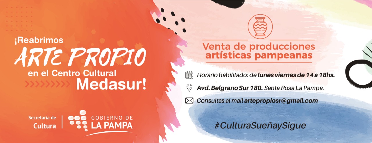 La Secretaría de Cultura del Gobierno de La Pampa informó que desde 1º del corriente mes se reabrió el local de Arte Propio en el Centro Provincial Cultural Medasur.