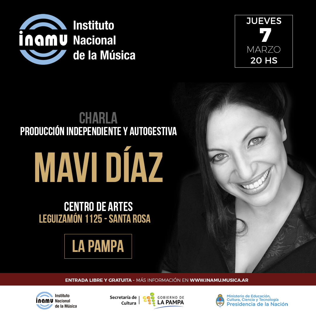 Estará a cargo de la cantante y productora Mavi Díaz, y se realizará el próximo jueves 7, desde las 20 en el Centro de Artes de Santa Rosa.