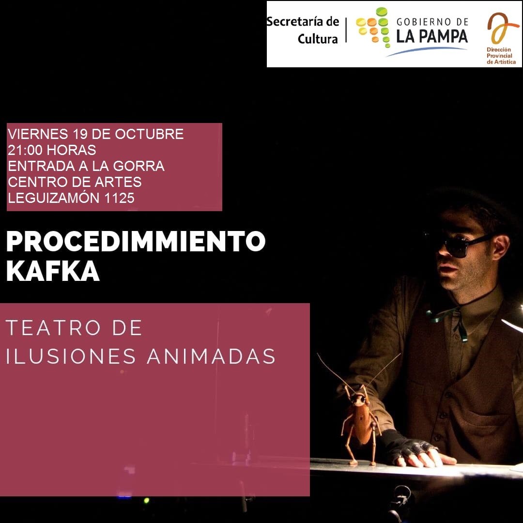 En el marco del Laboratorio de Formas Animadas, que organiza la Secretaría de Cultura a través de la Dirección Provincial de Artística, se presentará la obra Procedimiento Kafka, teatro de ilusiones animadas.