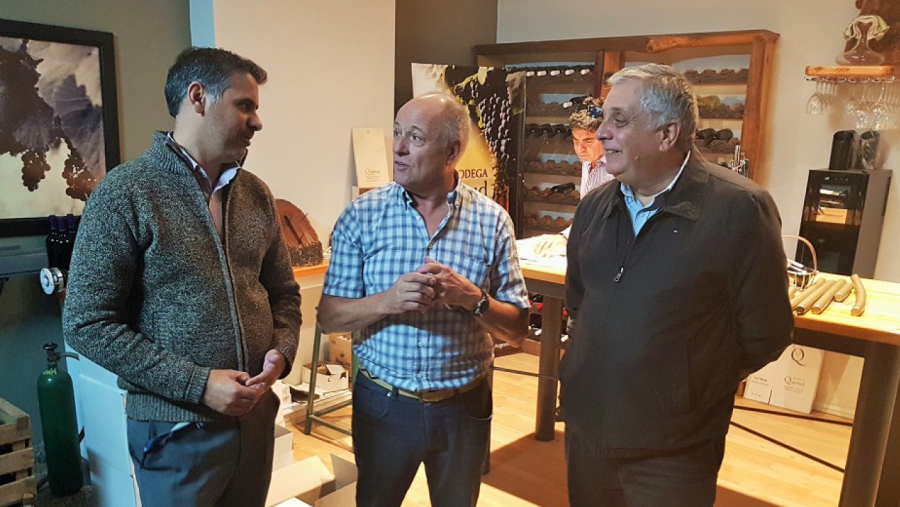 Hoy por la mañana, como anticipo de la propuesta el ministro de la Producción, Ricardo Moralejo, aceptó la invitación del titular de la Bodega Quietud, Ricardo Juan, y visitó el emprendimiento ubicado en la ciudad Capital. En ese escenario, junto con el subsecretario de Industria, Comercio y PyMEs, Silvano Tonellotto, el ministro recorrió el laboratorio, área de prensado y resguardo de los nuevos varietales. La presencia de una bodega en plena producción dentro del corazón territorial pampeano, podría constituirse como poco frecuente o utópico si se pensara en retrospectiva a lo cual el funcionario, evaluó más bien como “una linda película, hoy estamos viendo la primera etapa de elaboración de las uvas cosechadas en Casa de Piedra con el fin de sacar vinos de las diferentes variedades que tenemos cultivadas en la Chacra Experimental de Casa de Piedra. Nos pone contentos y orgullosos porque parte de esa uva se está elaborando acá en Santa Rosa, otra tanda en Gobernador Duval, lo cual permitirá a los pampeanos degustar en el corto plazo los vinos que conformarán la vendimia 2019”, afirmó. El ministro también reflexionó acerca del significado que bodegas y empresarios de provincias con mayor desarrollo vitivinícola observen la “explosiva” expansión pampeana en la materia, sosteniendo que “se está descubriendo un ambiente óptimo para las producciones de vides, tanto en cantidad como en calidad de uva obtenida. Esto se refleja en la producción de vinos y en la calidad de los mismos cuando compiten en diferentes eventos. Eso es lo importante, lo que están reconociendo otras bodegas del país y hoy ven como zonas muy atractivas e interesantes para invertir en nuevos viñedos; creo que en el corto plazo La Pampa estará dentro de las cinco provincias productoras de vinos más importantes de Argentina”. Más adelante no dudó en señalar que la industria vitivinícola es otro ejemplo del avance de La Pampa hacia un cambio de paradigma en su matriz productiva. “Seguramente, es una actividad importantísima para lo que es el desarrollo del área bajo riego del Río Colorado, especialmente para la comarca 25 de Mayo-Casa de Piedra donde vemos que se logran las mejores calidades de uva para llegar a excelentes vinos. Estamos confiados, no solamente por los resultados que ya están a la vista, sino también por las experiencias que realizan empresas muy prestigiosas en producción de vinos que tiene el país, que ven un potencial extraordinario en la zona”, sostuvo.