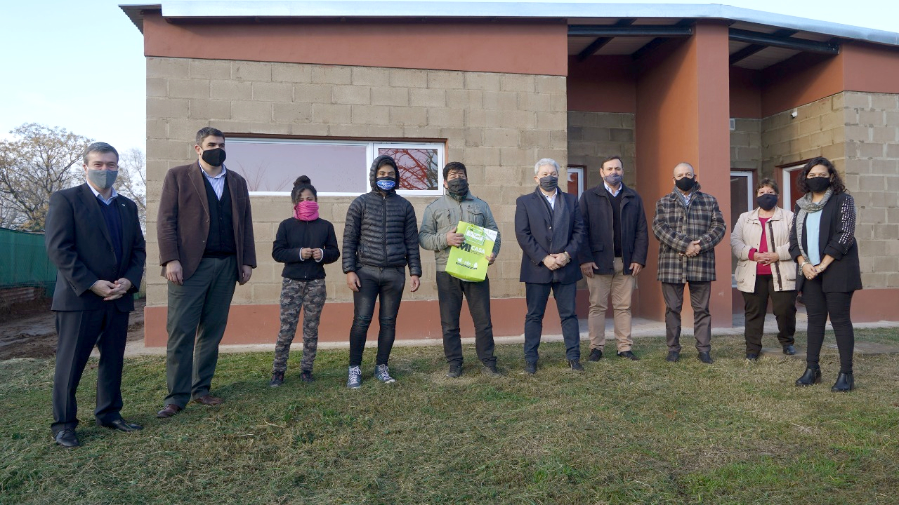 Doce viviendas del Plan “Mi Casa” fueron entregadas en la mañana de este jueves en la localidad de Anguil. Hasta allí llegaron los ministros de Gobierno, Justicia y Derechos Humanos, Daniel Pablo Bensusán, y de Desarrollo Social, Diego Álvarez y el secretario de Asuntos Municipales, Rogelio Schanton, para junto al presidente del IPAV, Jorge Lezcano y al intendente de la localidad, Héctor Delahaye, cumplir con la entrega a las nuevas familias beneficiadas con cada una de las unidades habitacionales. La actividad se desarrolló respetando todas las medidas sanitarias recomendadas por las autoridades de Salud Pública.