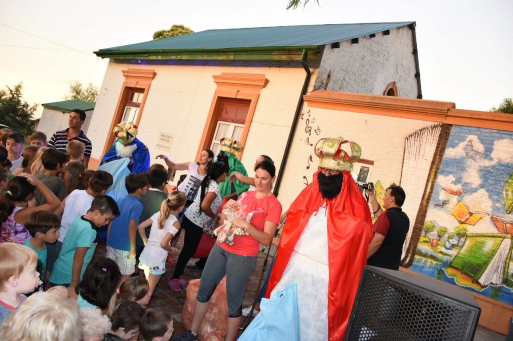 Cerca de doscientos niños y niñas se hicieron presentes para disfrutar de pelotero, cama elástica, juegos, torta, jugos, música y la tan esperada llegada de los Reyes Magos. Una tarde apacible acompañó al más de medio millar de personas que se dio cita a partir de las 19, hs llevando sus reposeras y equipo de mate para vivir un domingo poco habitual en la localidad.