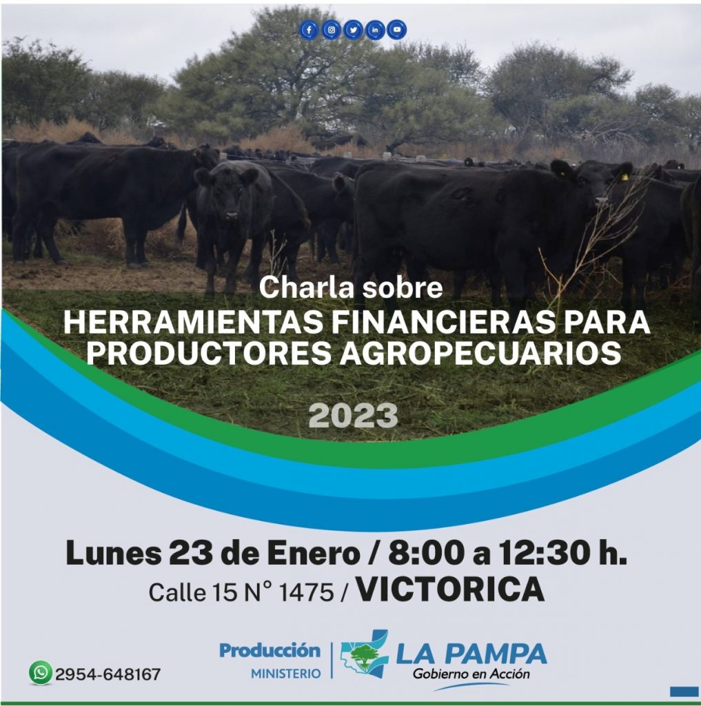 Las jornadas que comenzaran a las 8:00 en la sede del Ministerio de la Producción en la localidad de Victorica (calle 15 Nº 1475) tiene como finalidad asesorar respecto de las distintas herramientas financieras disponibles desde la cartera. Las Direcciones de Agricultura, Ganadería, Recursos Naturales, Asistencia Técnica y Financiera estarán presentes a través de sus autoridades y equipos técnicos donde se abordarán temas como líneas de créditos vigentes, Plan Ganadero, permisos de caza, Aportes No Reintegrables para el Bosque Nativo, entre otros.