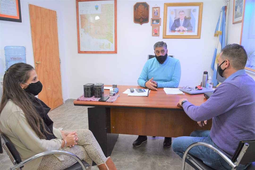 Hasta la localidad llegó el director de Minería e Inspecciones de la Provincia, Cristian Buss, quien mantuvo una reunión con el intendente local, Juan Barrionuevo, y la secretaria de Gobierno, Romina Elizaga.