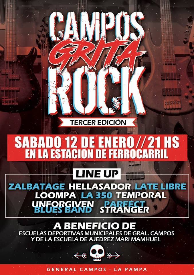 Este sábado 12 de enero a partir de las 21 hs. el sudeste pampeano volverá a vibrar al ritmo de las bandas que se presentarán en General Campos en una nueva edición del festival “Campos Grita Rock”.