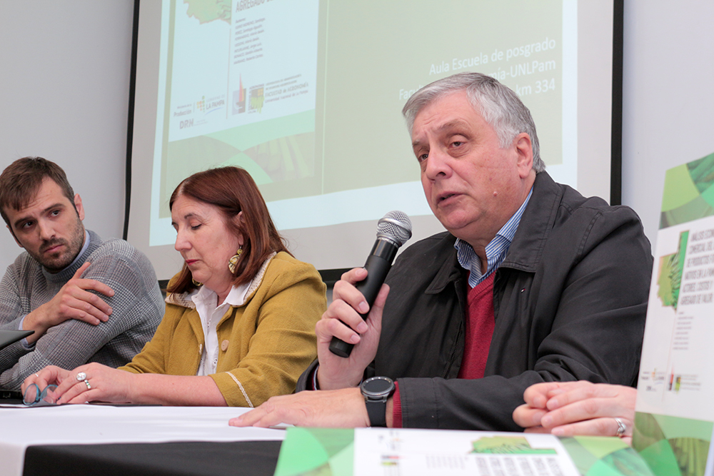 La presentación del libro “Análisis Económico y Comercial del Complejo de Productos Forestales en La Pampa: Actores, Costos y Agregado de Valor” se realizó en el Aula Escuela de posgrado de la Facultad de Agronomía de Santa Rosa. Estuvo presente el ministro de la Producción, Ricardo Moralejo.