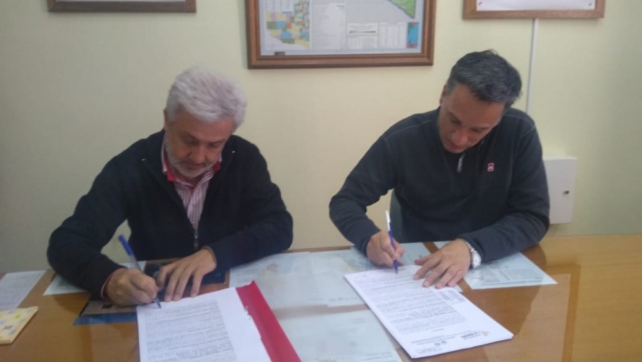 En las oficinas de la Administración Provincial del Agua, su administrador, Julio Rojo, firmó con la empresa Bepha Construcciones S.A. el contrato para la realización de la obra de recambio de reconexiones domiciliarias en la red de distribución de agua potable, en el Barrio San Cayetano de Santa Rosa.