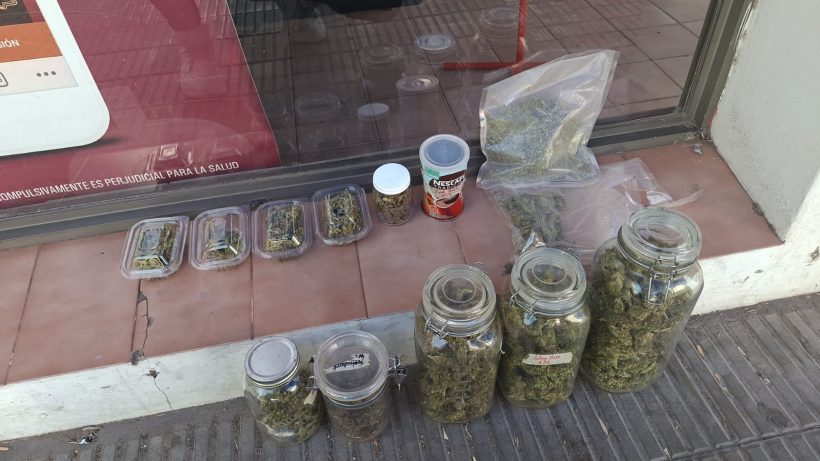 Personal policial que ayer realizaba patrullaje en la Avenida San Martín de la ciudad de Santa Rosa observó la presencia de una persona de 25 años que, al proceder a la identificación, se detectò la portaciòn de una bolsa color blanco. Al ser consultado sobre el contenido, exhibió voluntariamente frascos de vidrio que contenían sustancias ilícitas.
