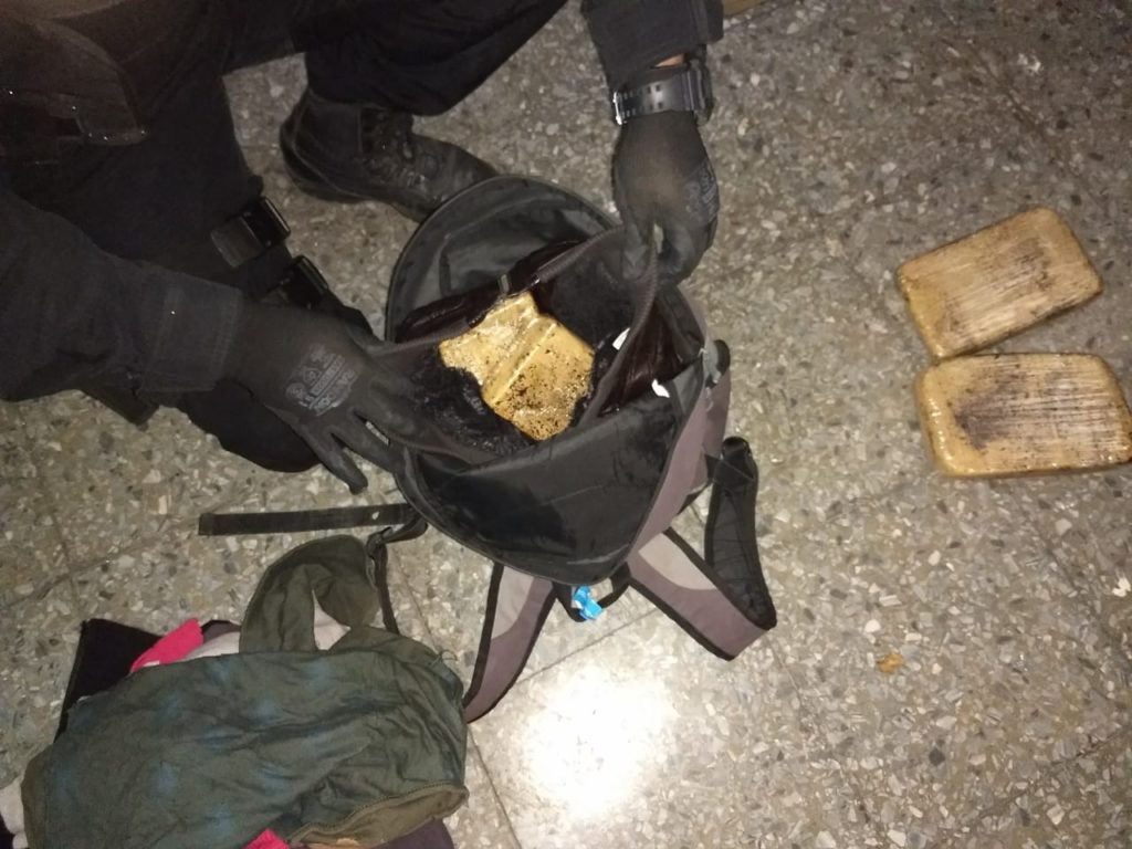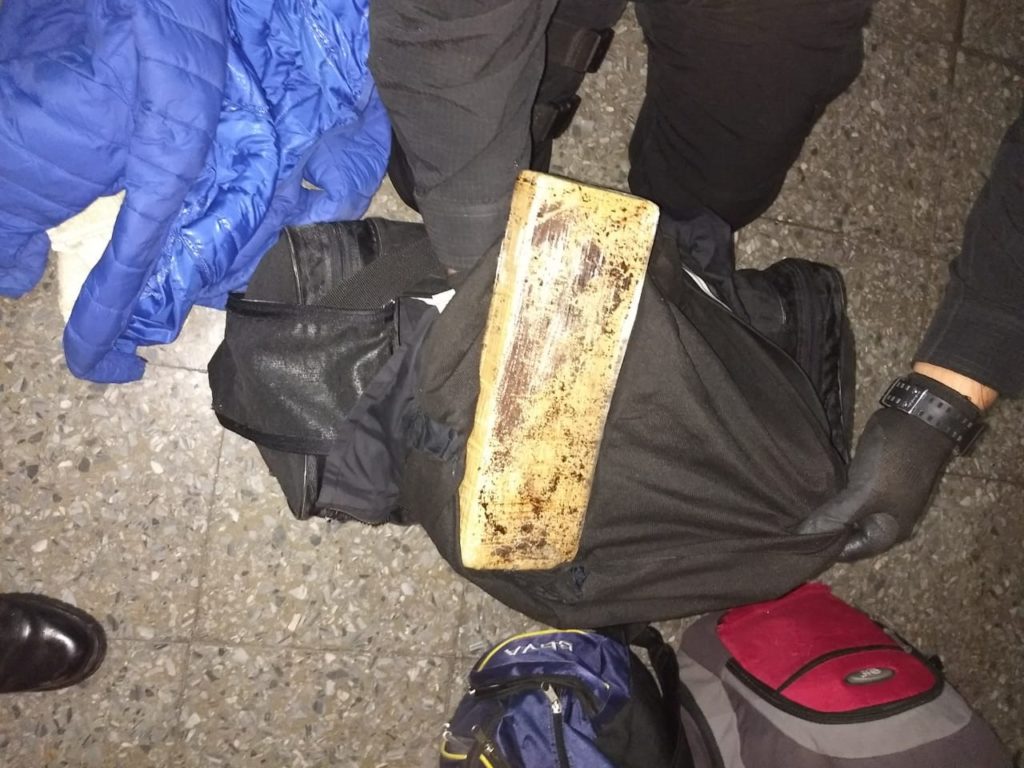 Cuando los efectivos de policía pasaron el equipaje por el scanner, dentro de una mochila y de un bolso divisaron la presencia de estupefacientes. Continuando con las acciones que determina la ley, realizan el control con el can Aldo quien marcó la posible existencia de los mismos.