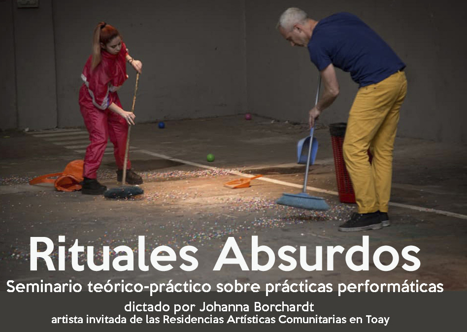 En Rituales Absurdos, seminario teórico práctico sobre las prácticas performáticas pensadas desde las artes visuales en diálogo con las artes del movimiento, la artista residente Johanna Borchardt ofrece a la comunidad un seminario para reflexionar sobre el cuerpo, su movimiento y los objetos con los que los relacionamos cotidianamente (sobre lo aprendido y naturalizado).